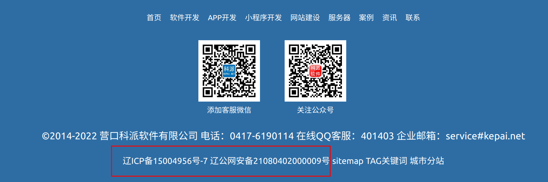 如果您的網(wǎng)站還沒有標(biāo)注備案信息,可以聯(lián)絡(luò)科派的技術(shù)部,幫您添加上去(免費技術(shù)服務(wù))