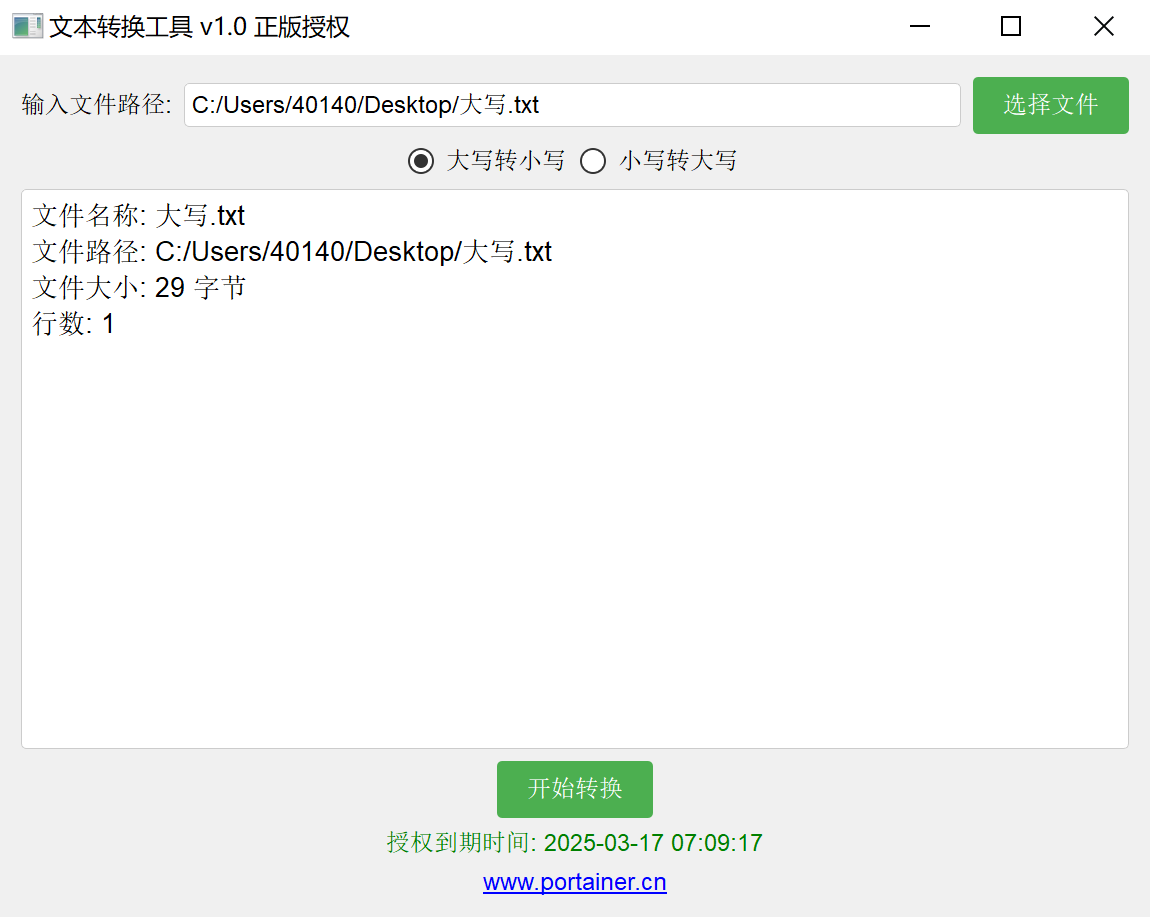 文本轉(zhuǎn)換工具 v1.0 正版授權(quán) 是一款用于批量轉(zhuǎn)換文本文件大小寫的工具。主要功能包括: